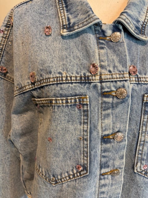 PINK RHINESTONE BLUE JEAN JACKET